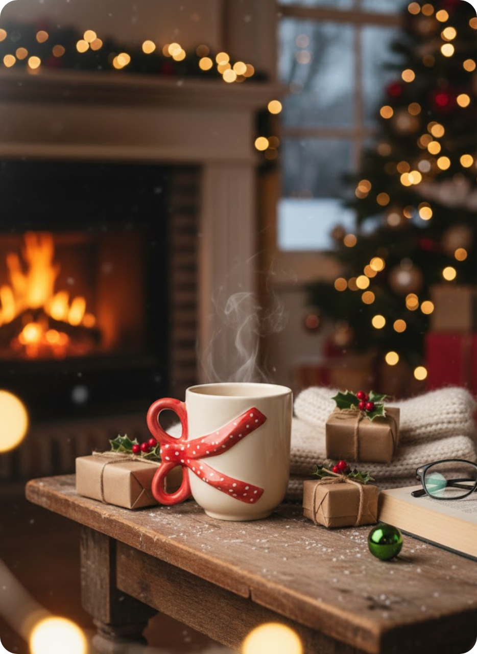 Meet the Bow-tiful Mug — a handcrafted ceramic beauty designed to make every sip feel like a tiny celebration. This mug is your go-to companion for cozy cocoa nights, chai breaks, and all things Christmas-y.